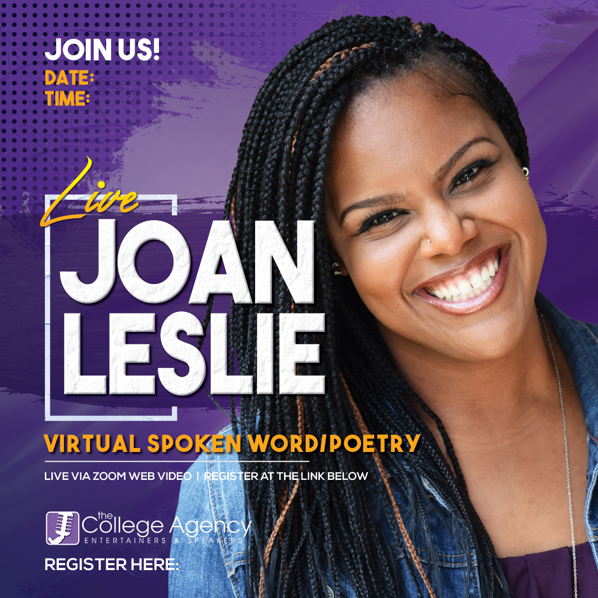 Tonight’s poet was featured on Button Poetry as Video Contest Runner Up, was a 2-Time Queen of the South Poetry Slam Champion and has been featured on Write About Now and All Def Poetry. Please welcome Joan Leslie!